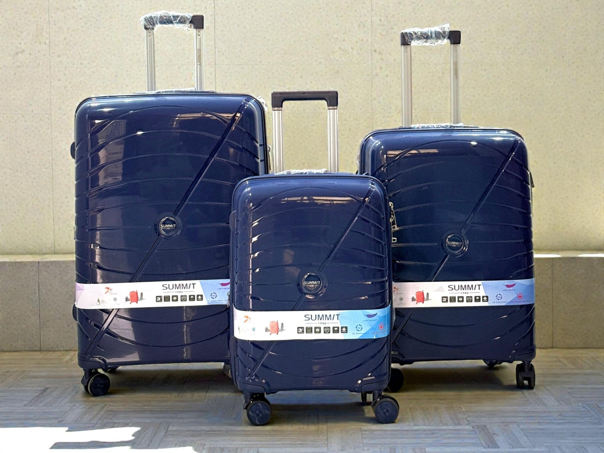 This 3-piece Summit luggage set combines durability and security with premium PP material construction and 360-degree revolving wheels for effortless mobility. Each bag features an expandable zipper for added packing space and an anti-theft zipper design to protect your belongings. Equipped with TSA-approved locks, these suitcases ensure compliance with travel regulations while keeping your items safe. Ideal for frequent travelers seeking reliable and secure luggage solutions.